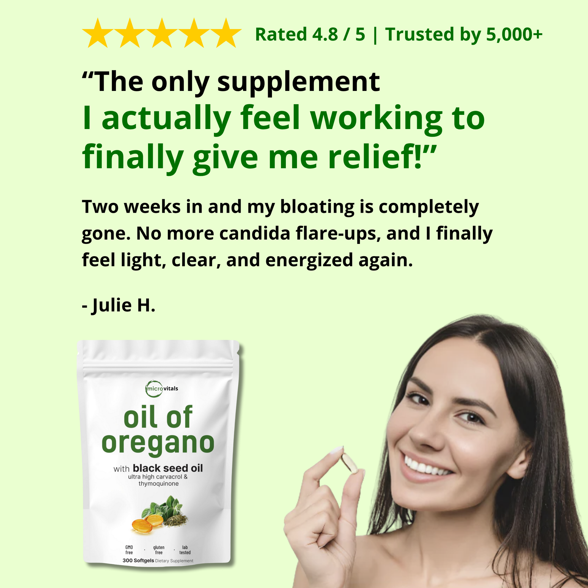 Most people feel noticeable relief within 7-14 days. For deeper issues (like candida or recurring bloat), a 2-4 week protocol is common. After that, you can cycle off, or continue with a lower maintenance dose.