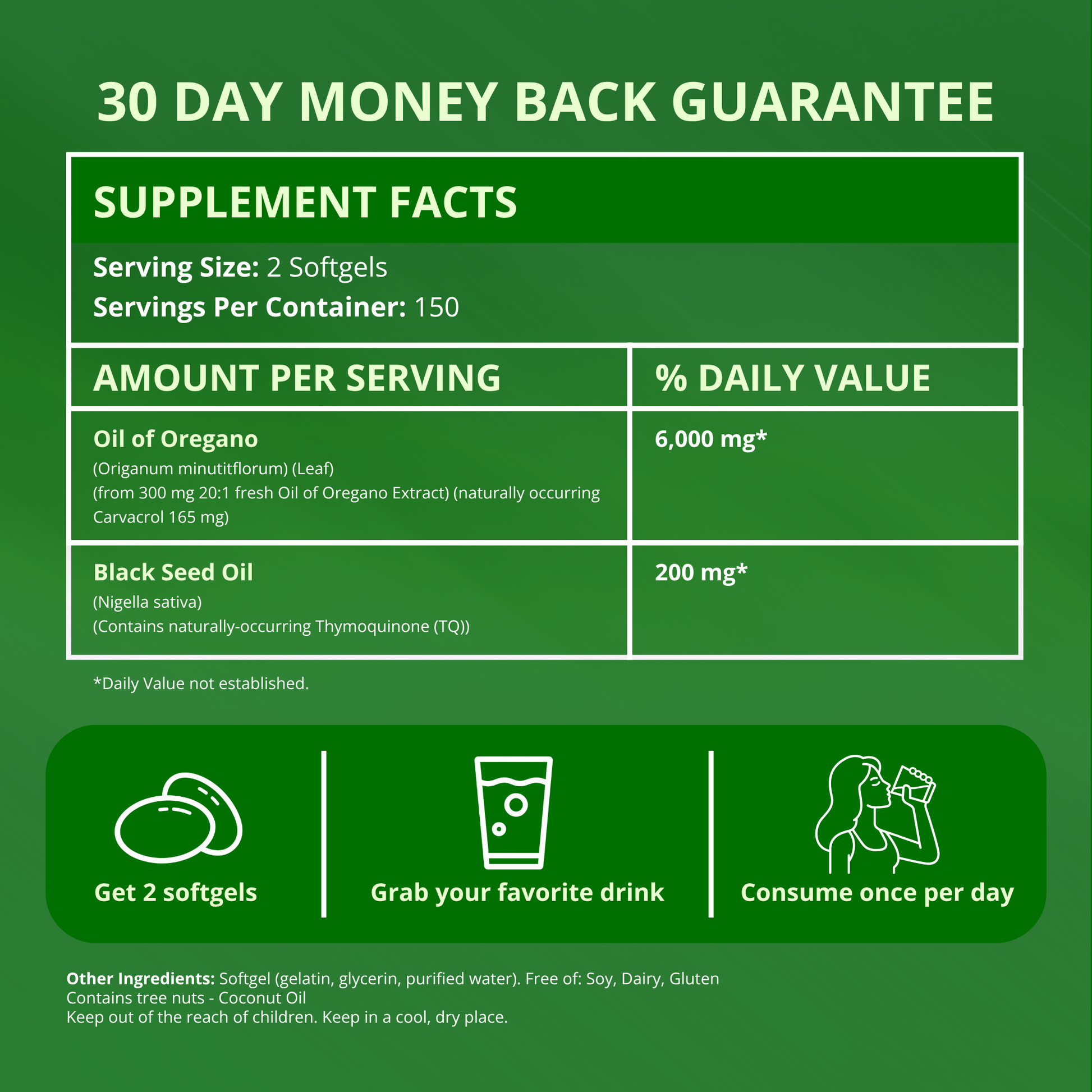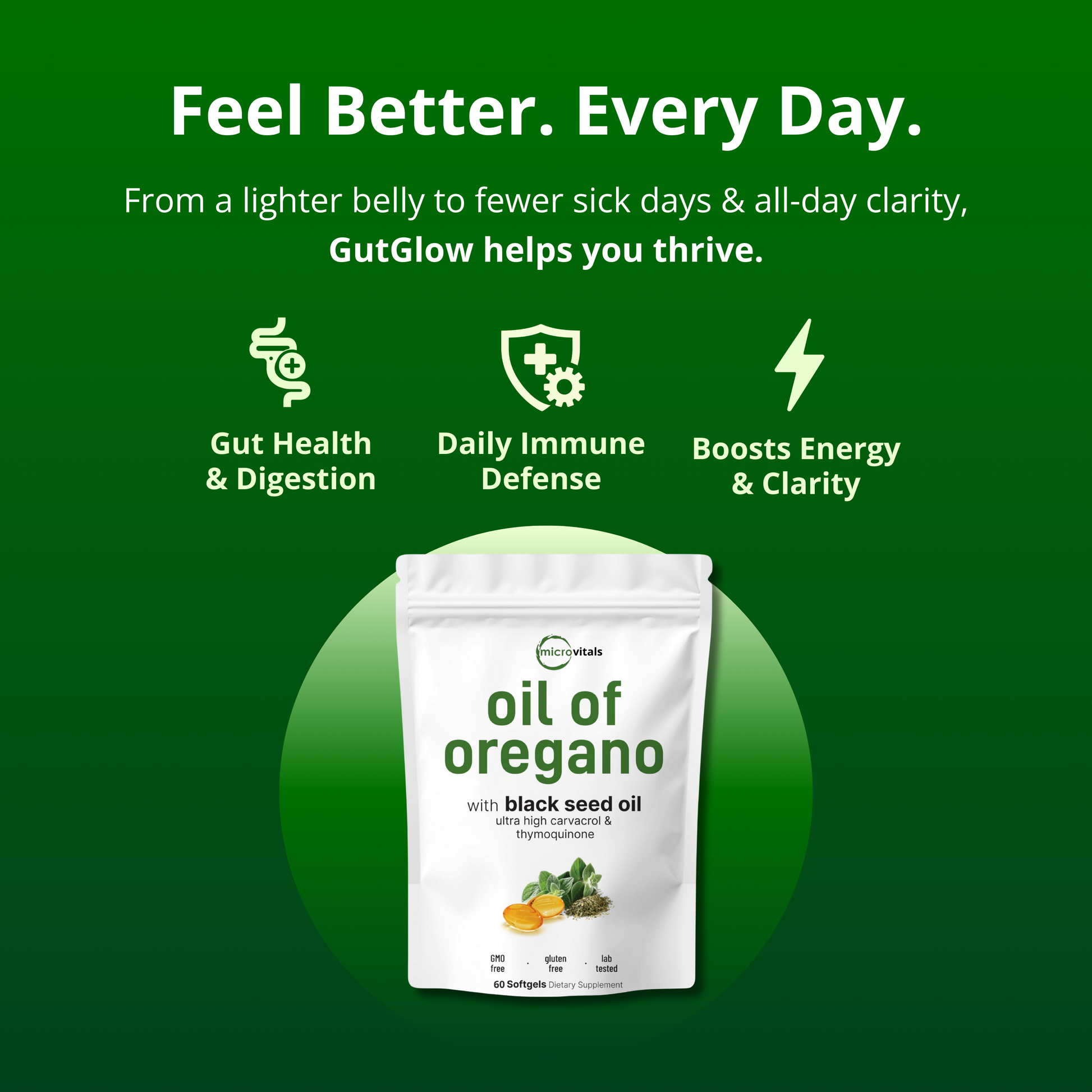 For daily support, take 1 softgel once or twice a day with meals.If you're addressing something more active like bloating, candida, or immune challenges, take 2 softgels, ideally for 10–14 days, then pause or rotate.